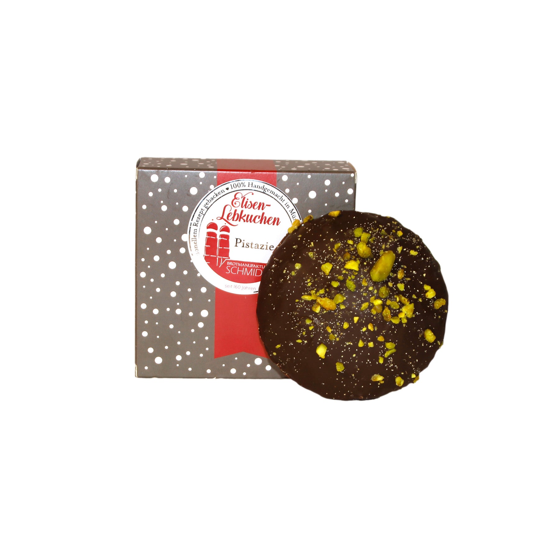 Zucker, Pistazien, Kuvertüre (Kakao, Zucker, Kakaobutter, Sojalecithin), Eiweiß*, Marzipan*, Mandeln*, Persipan*, Haselnüsse*, Sahne*, Weiße Schokolade, Weizenmehl*, Sonnenblumenöl, Orangeat, Zitronat, Sorbit, Spuren, Hirschhornsalz, Piment, Coriander, Zimt, natürliches Aroma Bourbonvanille, Cardamom, Anis, Macis, Nelken.