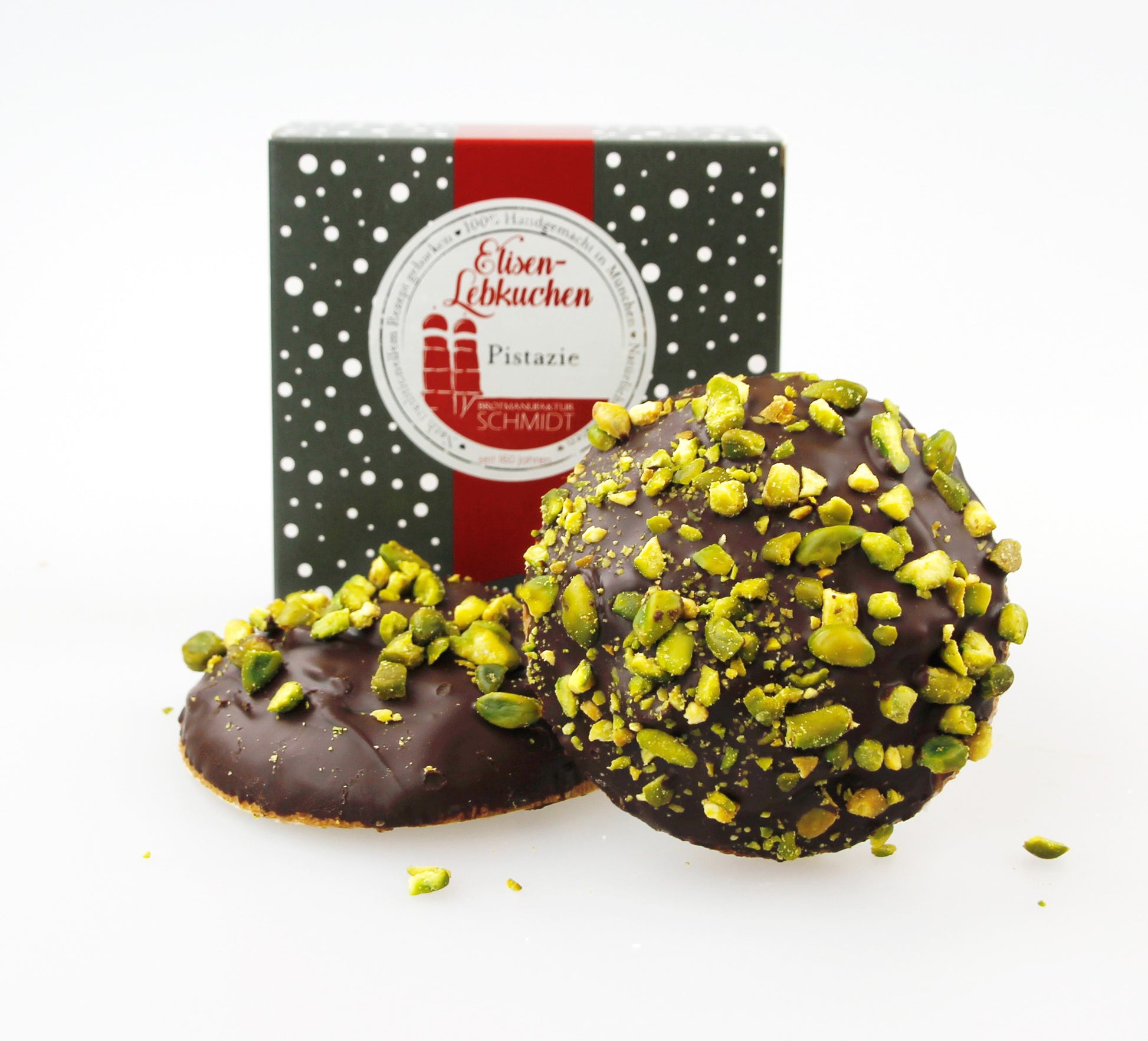 Inhaltsstoffe: Zucker, Pistazien, Eiweiß*, PERSIPAN*, MARZIPAN*, WEIZENMEHL*, Orangeat, Zitronat, SPUREN, Sonnenblumenlecithin, Hirschhornsalz, Kardamom, Zimt, KAKAOBUTTER, KAKAOMASSE, natürliches Aroma Bourbonvanille, Anis, Macis, Nelken, Piment