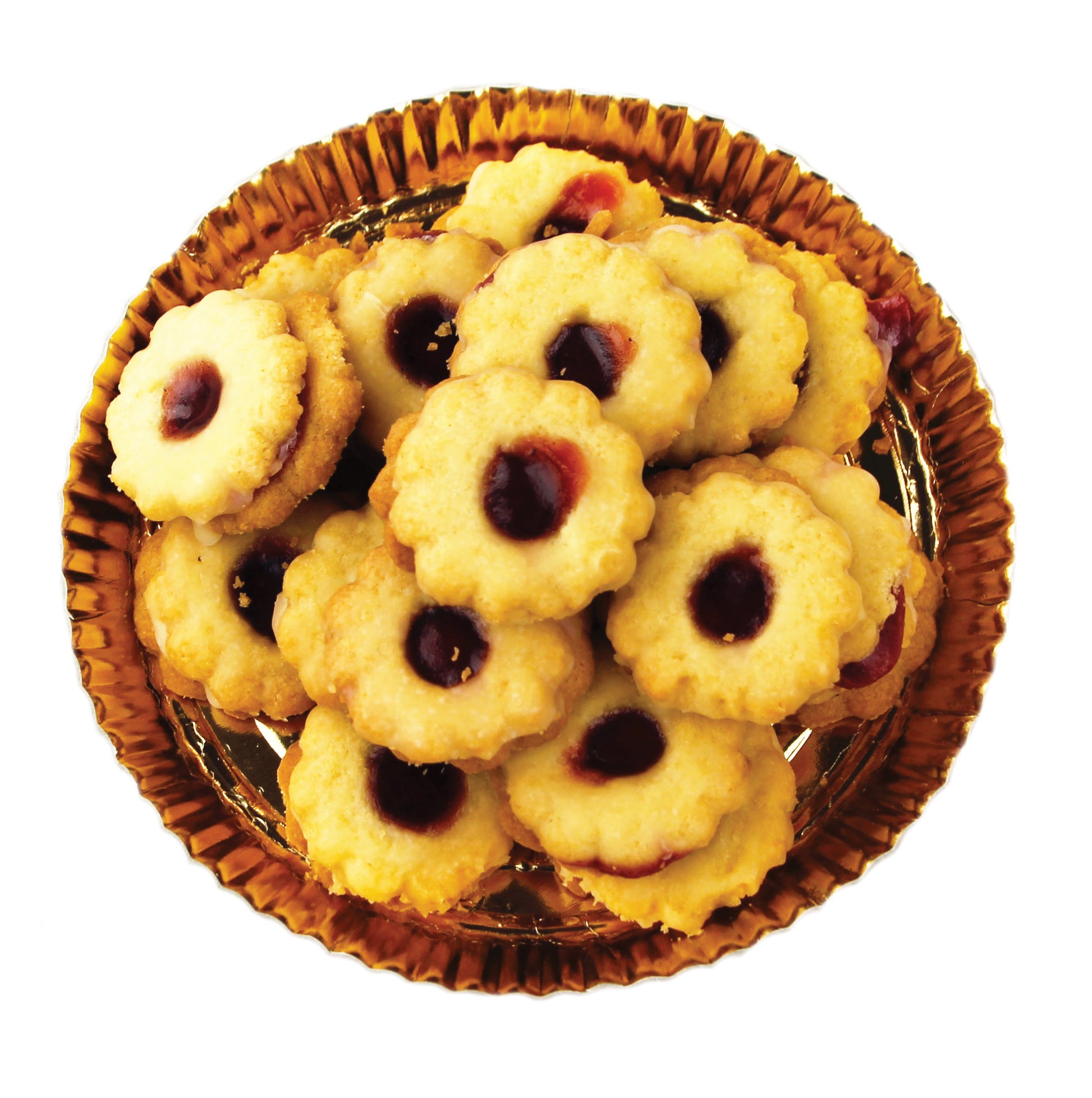 feines Buttergebäck gefüllt mit Johanisbeerkonfitüre.