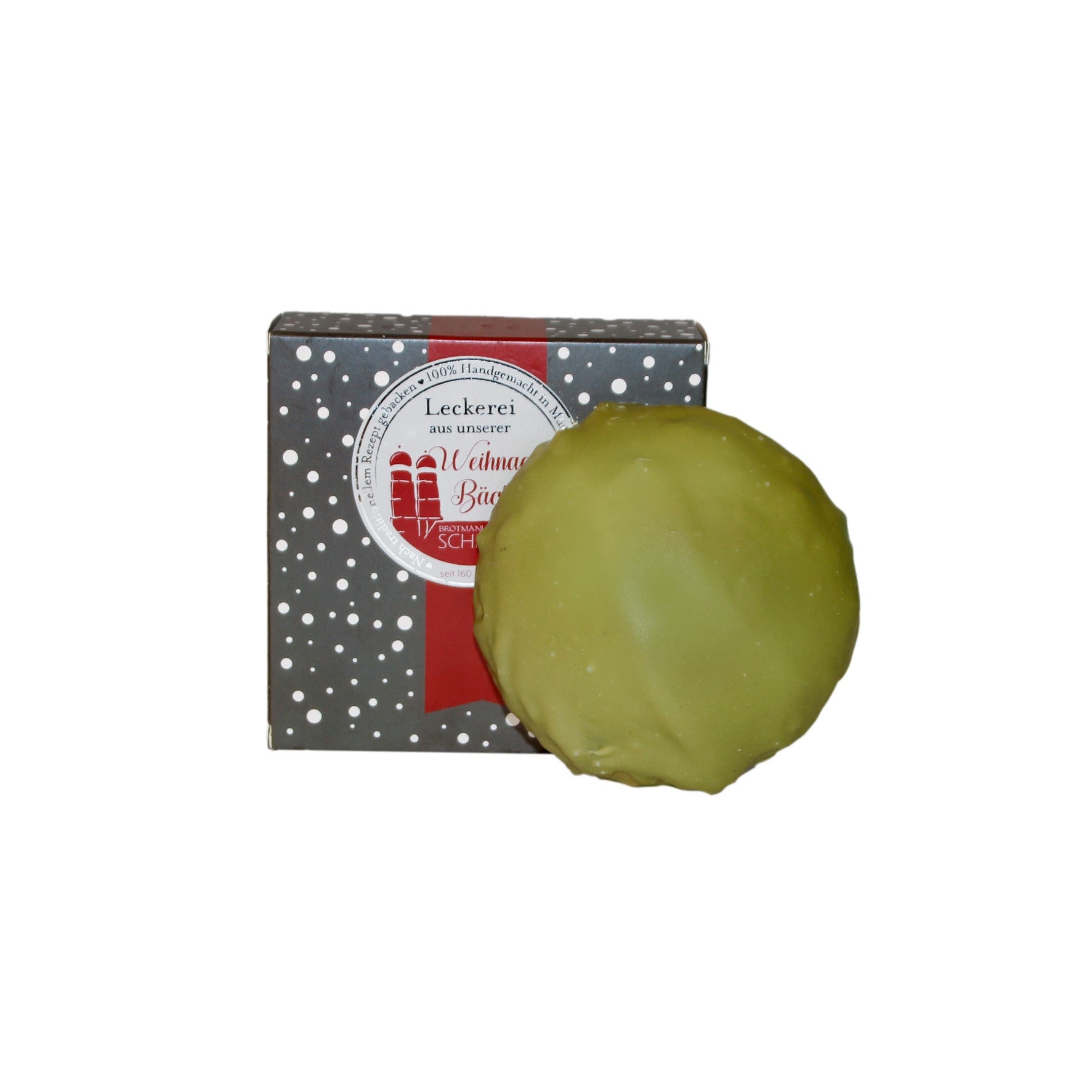 Weiße Schokolade, Zucker, Eiweiß*, Sahne*, Marzipan*, Persipan*, Haselnüsse*, Mandeln*, Weizenmehl*, Matcha, Orangeat, Zitronat, Sorbit, Spuren, Hirschhornsalz, Piment, Coriander, Zimt, natürliches Aroma Bourbonvanille, Cardamom, Anis, Macis, Nelken.
